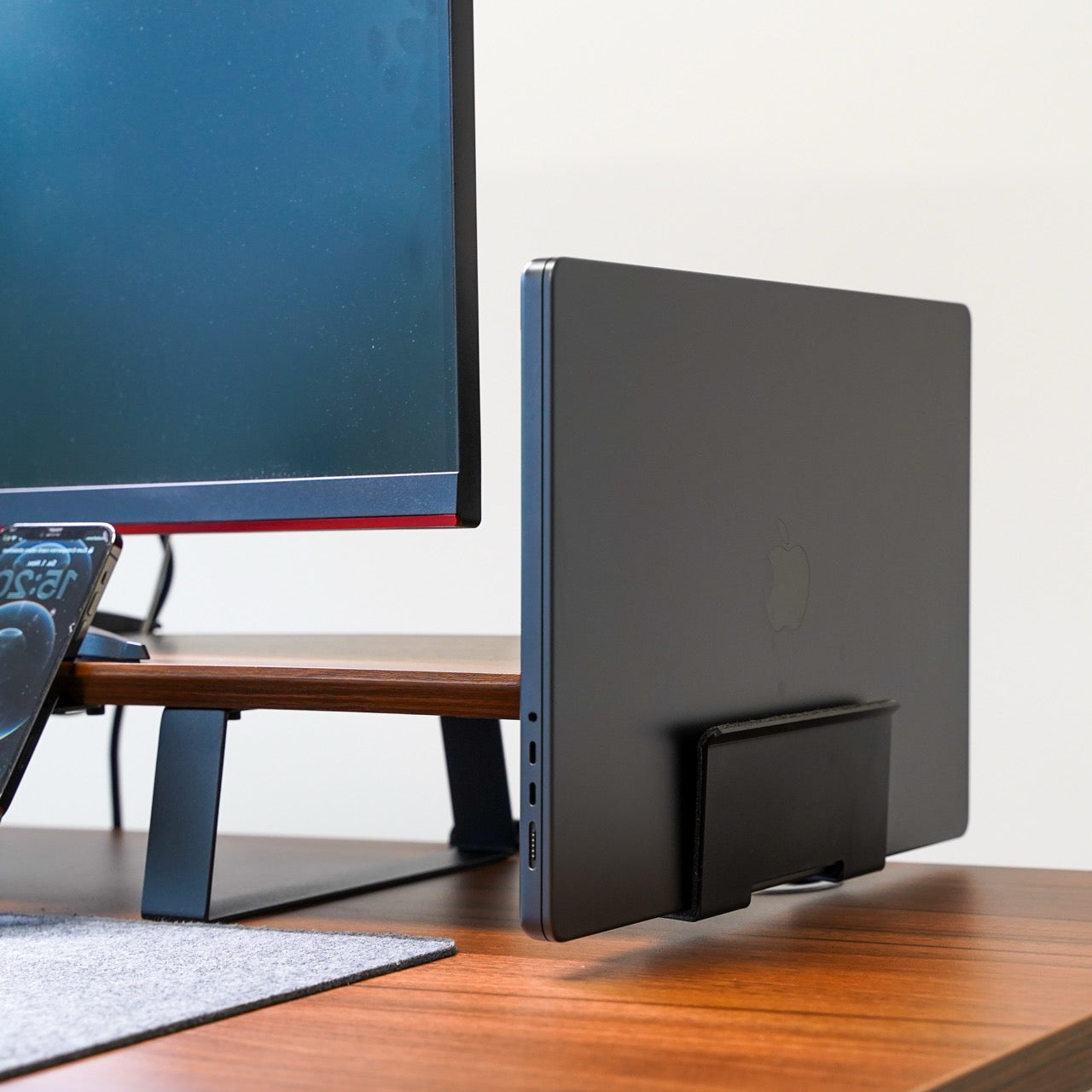 Entscheide nach Workflow und Platz. Arbeitest du mit zwei Displays, wähle den Ständer für Laptops auf dem Board: ergonomischer Blick, mehr Übersicht, natürliche Laptoperhöhung. Liebst du einen radikal aufgeräumten Tisch, nimm das vertikale Dock als Laptophalter – der Rechner verschwindet seitlich, das Kabelmanagement bleibt sauber. Beide Varianten hervorragend mit unseren Produkten wie, Monitorständer, Schublade, Kopfhörer- oder Watch-Halter kompatibel. So entsteht aus dem Laptop-Aufsteller und Dock ein modulares System, das mit dir wächst – heute kompakt, morgen erweitert.