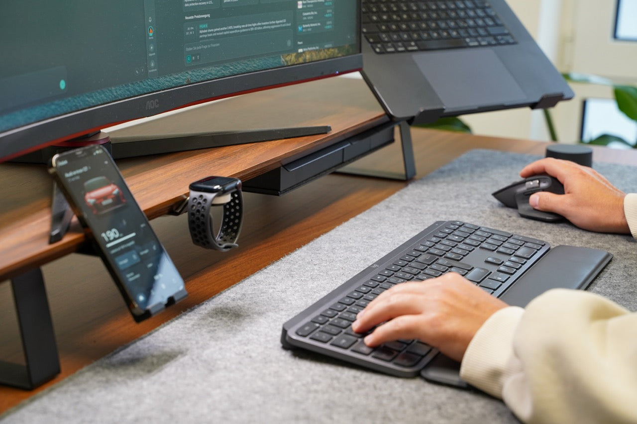 Der Watch Stand entfaltet seine Stärke im Team. In Kombination mit Schublade verschwinden Kleinteile; der Laptop-Halter hält die Fläche frei; ein MagSafe-Halter gibt dem iPhone einen festen Ort. Alles greift in das stufenlose Schienensystem – du verschiebst Module in Sekunden, wenn sich Workflows ändern. Dadurch bleibt die Halterung der Apple Watch nicht nur eine Ladehilfe, sondern Teil eines wachsenden Ökosystems. Du definierst Orte, reduzierst Wege und erhöhst den Flow im Alltag. So entsteht aus einzelnen Bausteinen ein stimmiges Setup, das sich an neue Geräte anpasst – und in dem der Watch Stand als kleiner, präziser Anker die Routine spürbar erleichtert. Für Fans kompakter Setups ist der Watch Stand ein Pflichtbaustein.